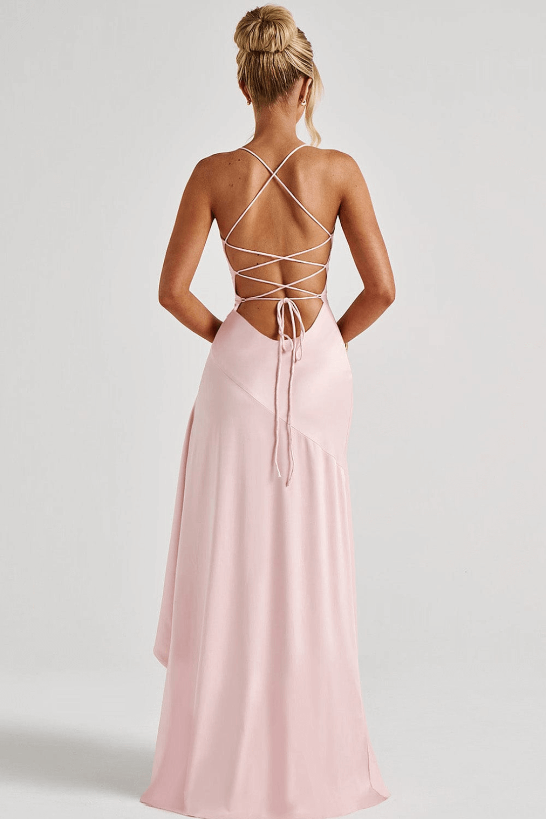 The Alice maxi dress captures the essence of modern glamour. Designed in a lustrous stretch satin, it features a twisted cowl neckline that drapes effortlessly across the bust and a dramatic high-low ruffled hem that moves with every step. The open lace-up back adds a sultry edge, while the thigh-high slit brings balance between sophistication and allure. Whether it’s a sunset event or an evening soirée, Alice ensures you’ll make an unforgettable entrance.