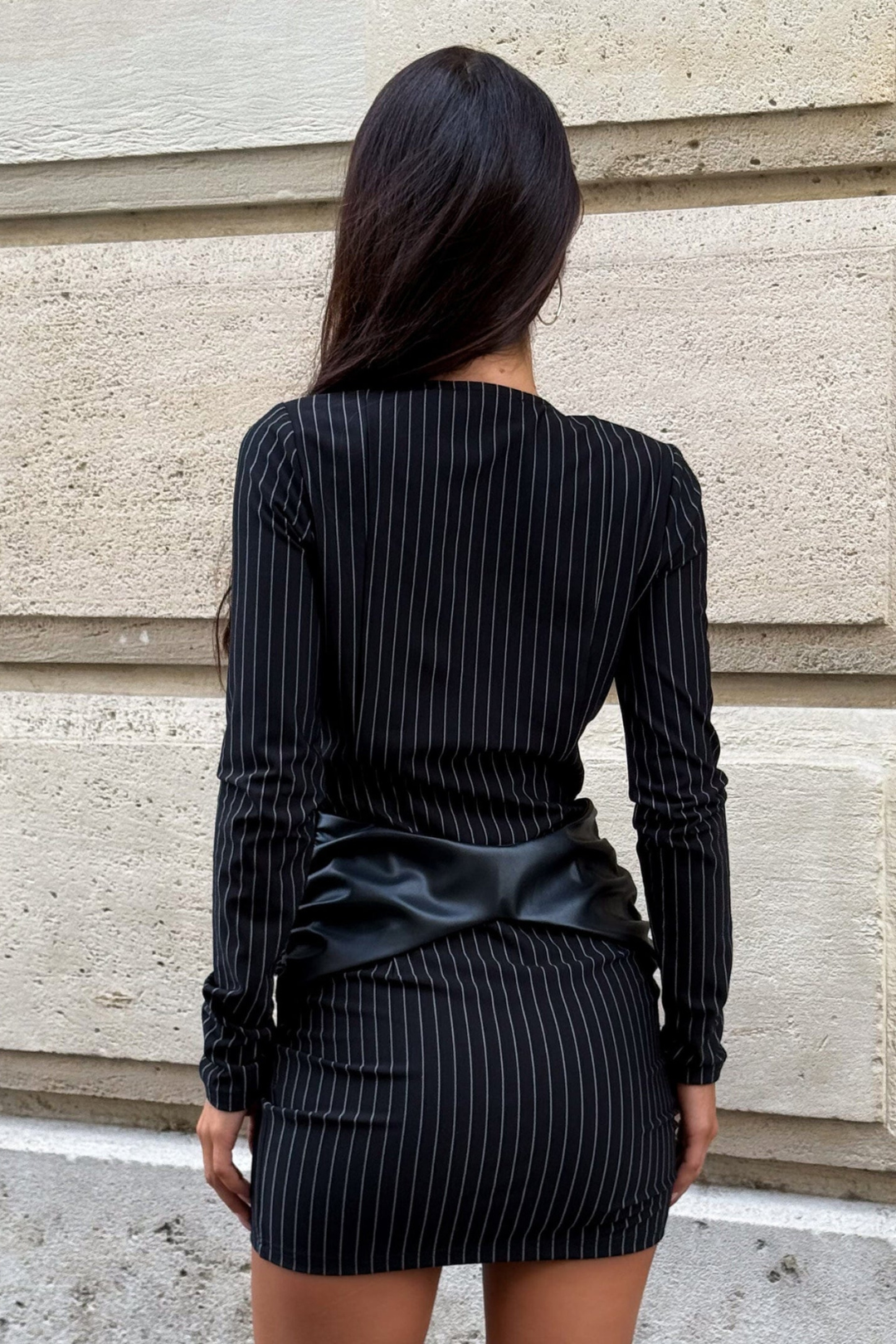 Command the room in the Grace Mini Dress, a statement of power and poise. Designed with a sleek pinstripe finish and a body-hugging silhouette, this dress blends timeless tailoring with modern allure. The plunging neckline is supported with discreet silicone grip for confidence and comfort, while the bold PU belt cinches your waist to perfection.