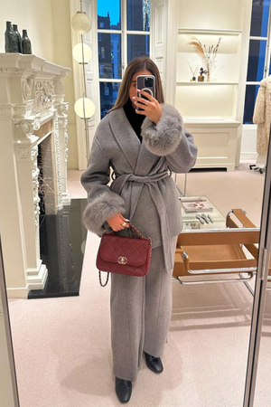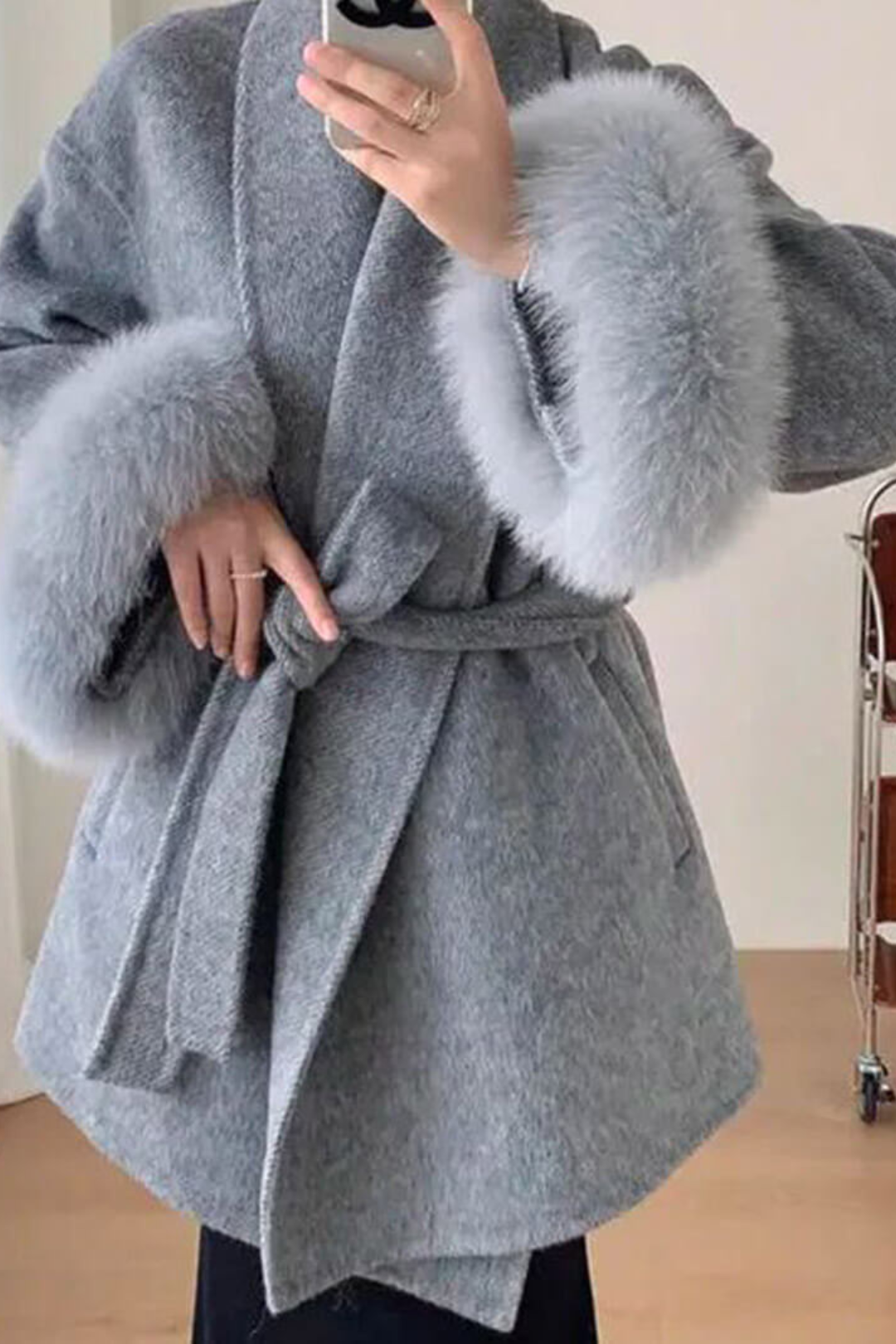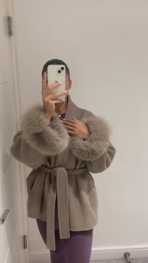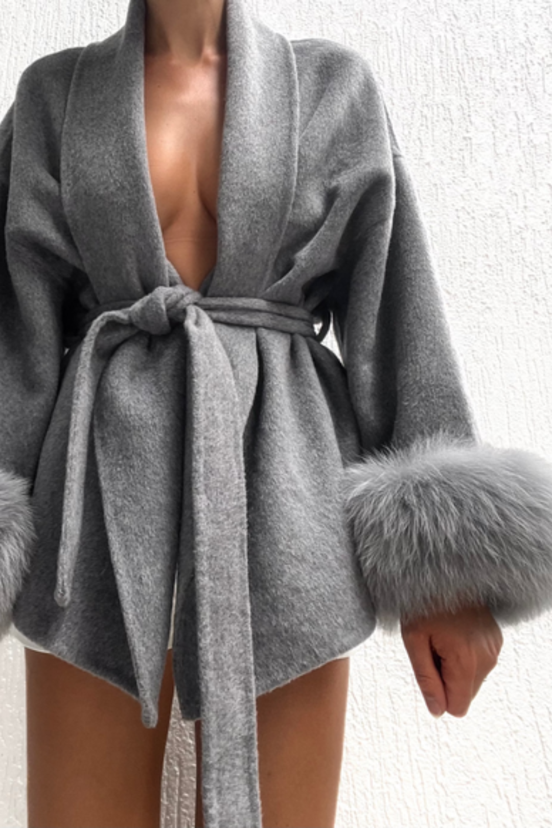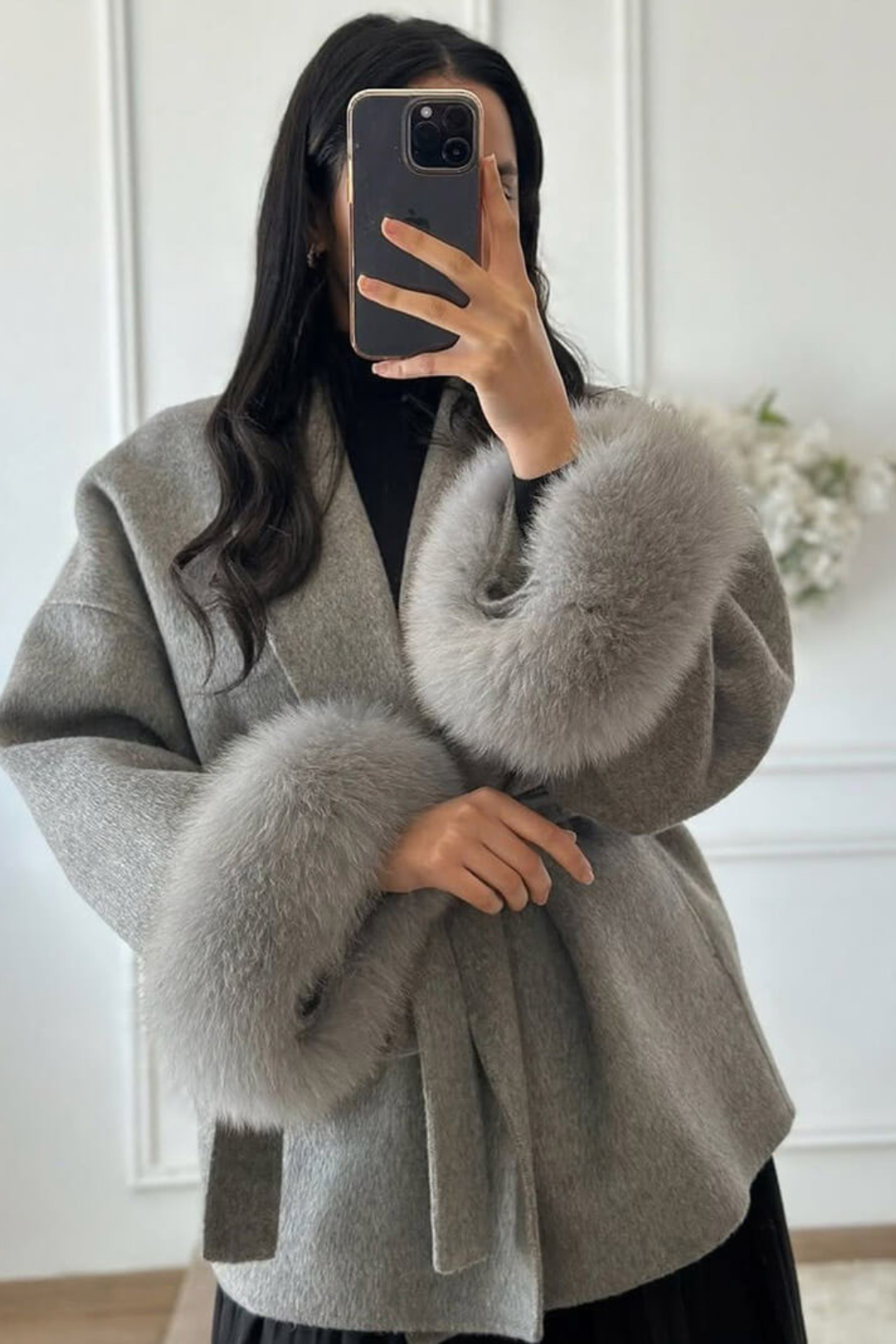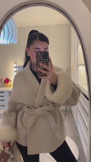 Stay effortlessly chic with this elegant coat featuring detachable faux fur cuffs. Designed for warmth and versatility, it offers a refined silhouette that transitions seamlessly from day to night. A timeless piece that combines comfort, style, and sophistication.