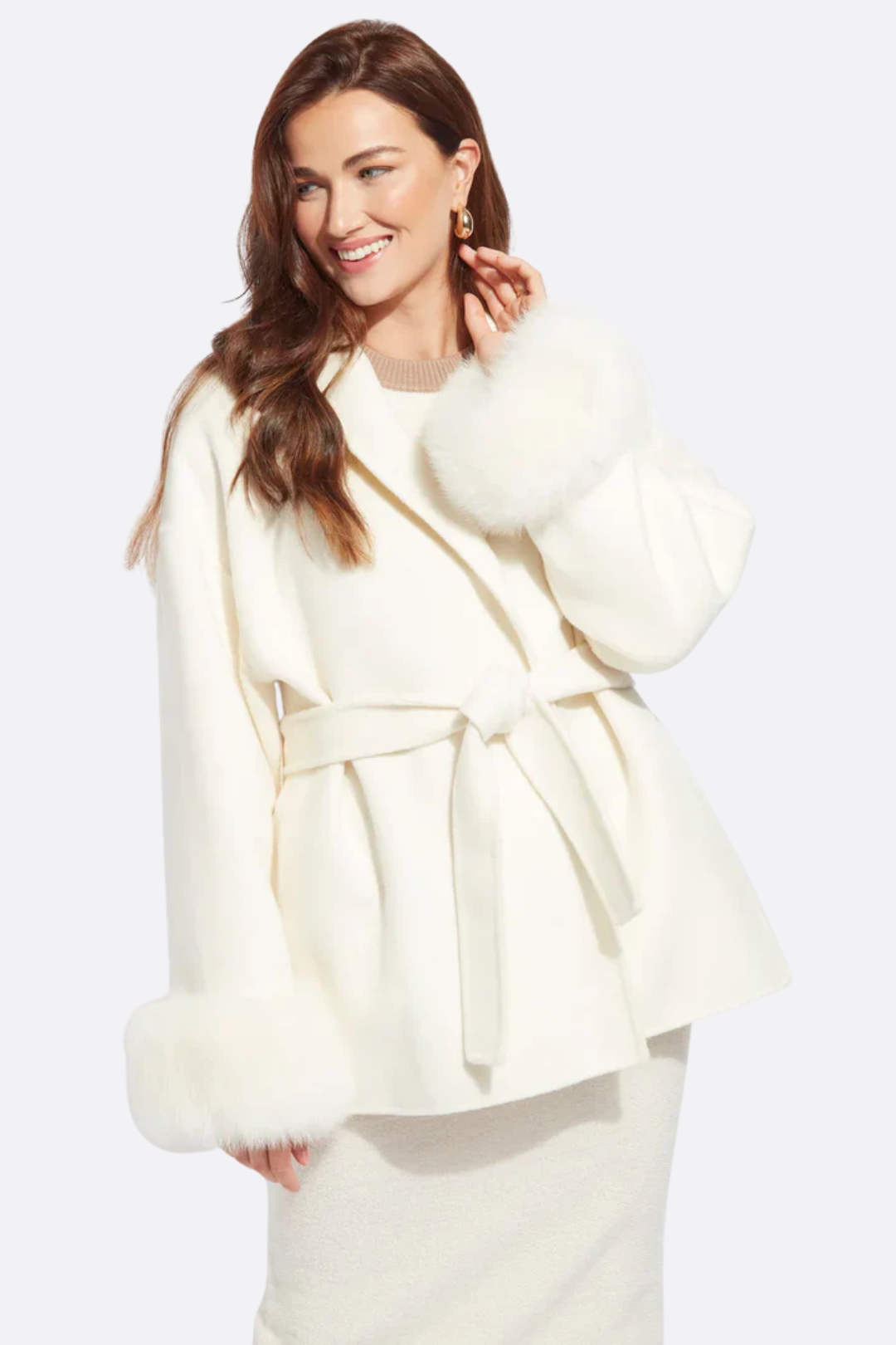 The adjustable belt cinches your waist while the plush faux fur cuffs add a touch of modern glamour. Lightweight yet warm, it’s perfect for layering and made to be your go-to piece season after season.