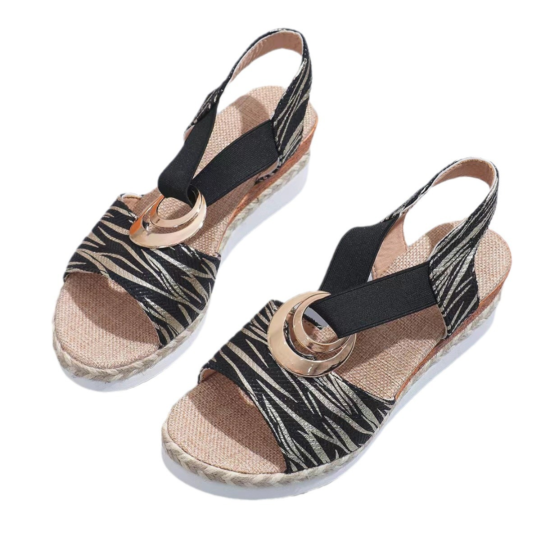 The elastic strap ensures a flexible fit for different foot shapes while keeping the sandal securely in place.